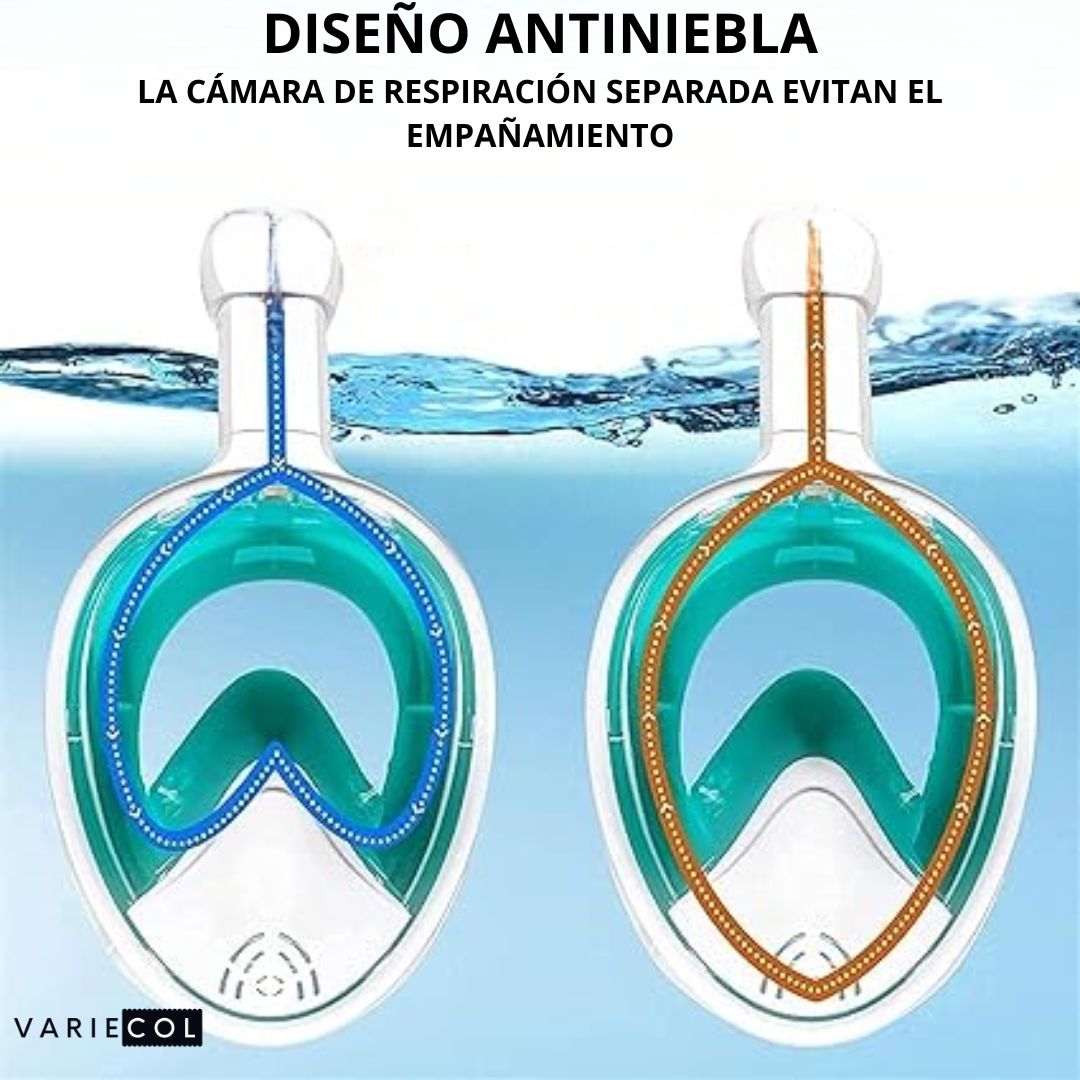 Experimenta una comodidad incomparable y una seguridad total bajo el agua gracias a nuestra máscara de esnórquel con sistema de respiración de seguridad.