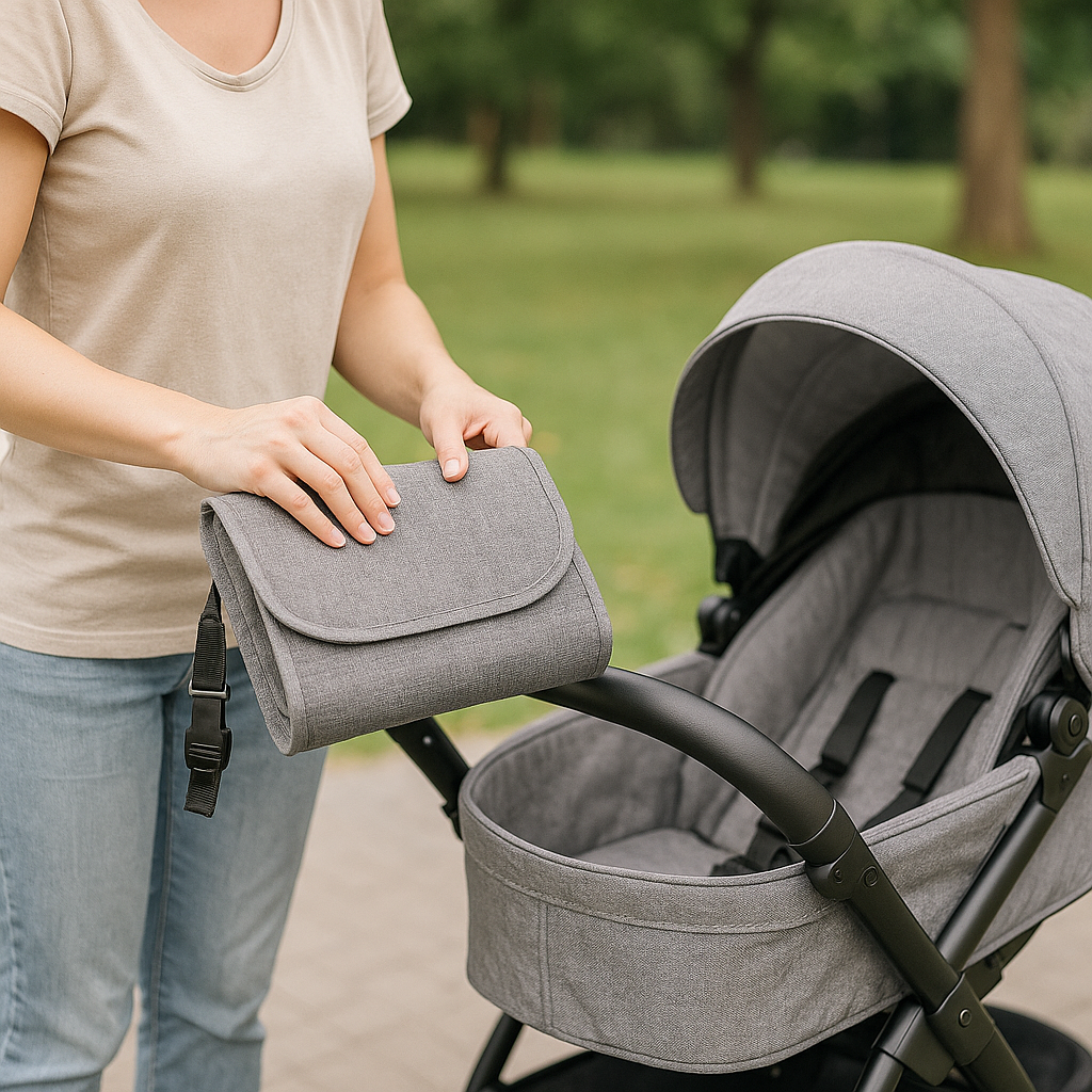 No es solo un cambiador: es una estación portátil de cuidado creada para quienes viven al ritmo de su bebé. Su diseño plegable tipo bolso te permite llevarlo a cualquier parte — del carro al parque, del café al consultorio — sin perder estilo ni comodidad.