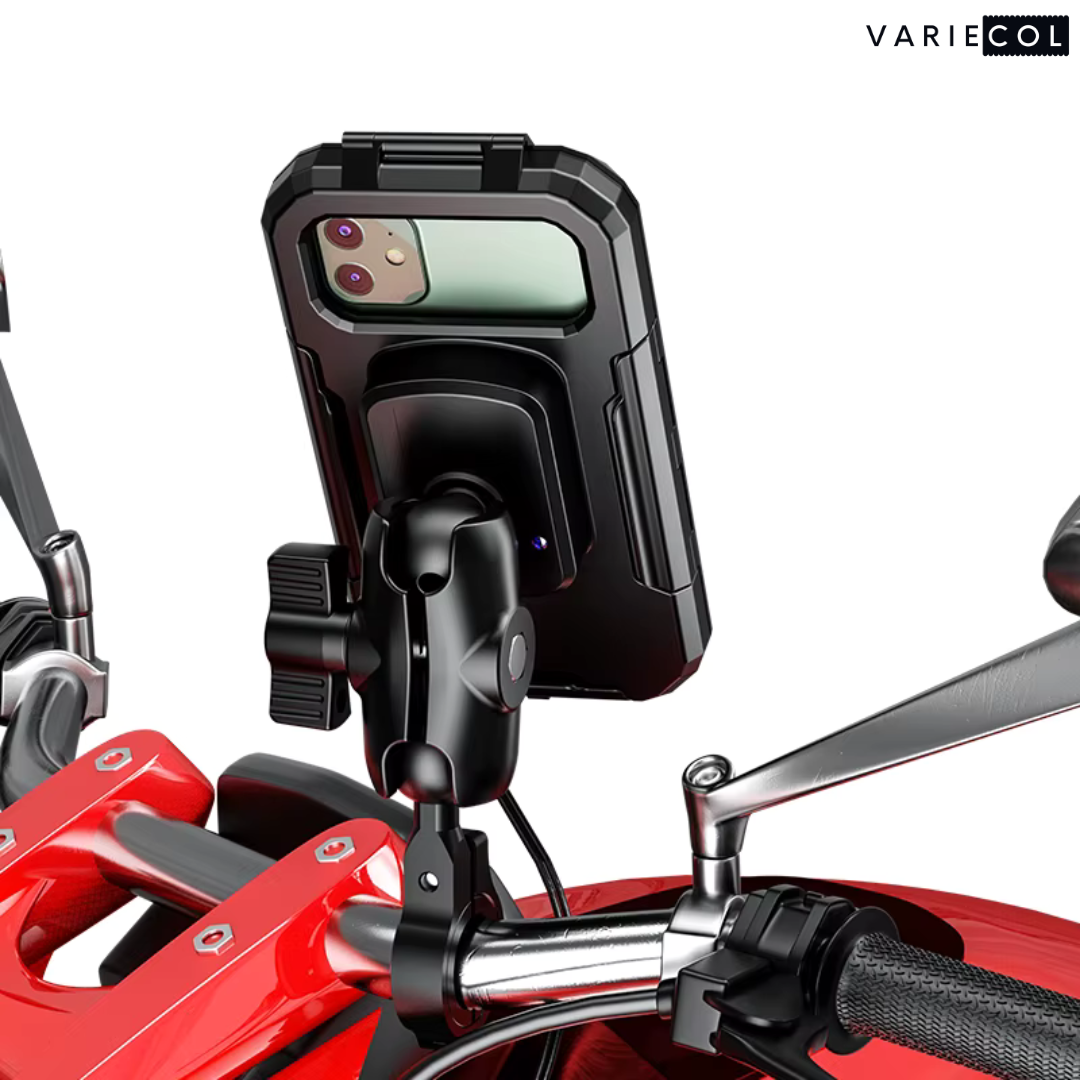 🔒 Fijación firme y segura: Se adapta fácilmente al manillar de motos y bicicletas. Aguanta huecos, velocidad y vibraciones sin soltarse.