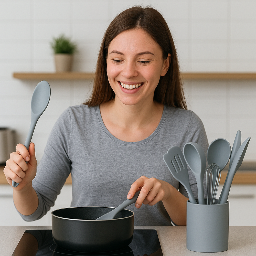 Combina funcionalidad, estilo y resistencia en un solo set. Su diseño moderno y colores elegantes elevan el look de tu cocina mientras te facilitan cada preparación. Ideal para quienes aman cocinar y cuidar los detalles.